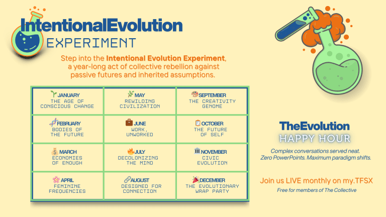 Step into the Intentional Evolution Experiment, a year-long act of collective rebellion against passive futures and inherited assumptions. We’re not here to predict tomorrow; we’re here to consciously re-shape it through compassion, creativity, and courageous re-imagining.